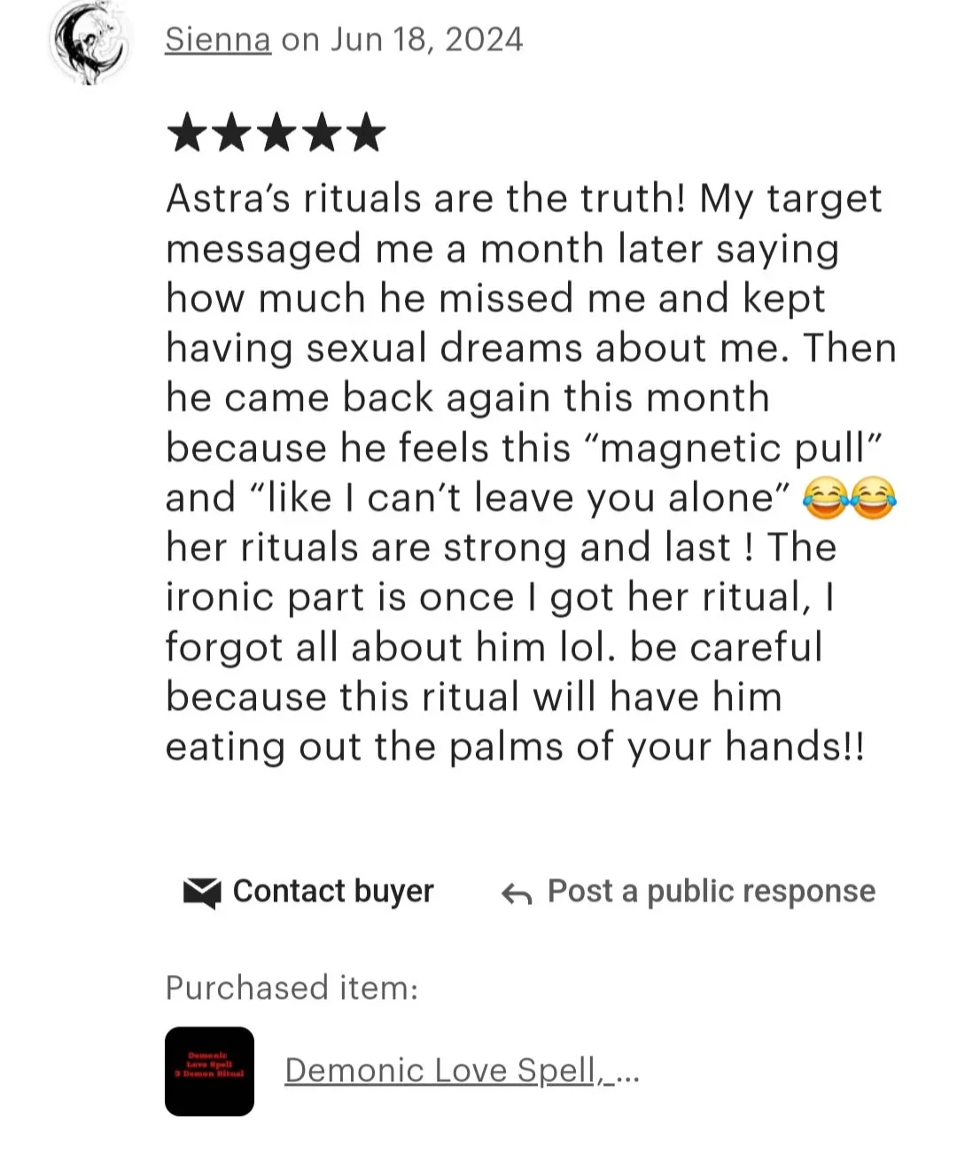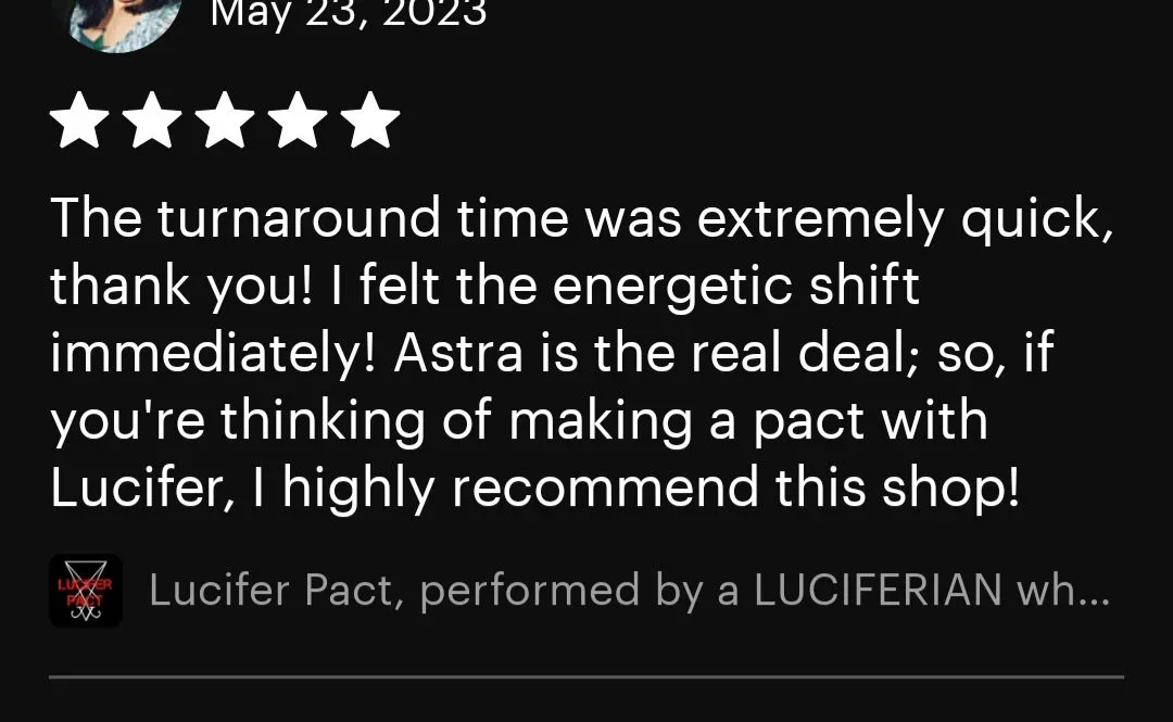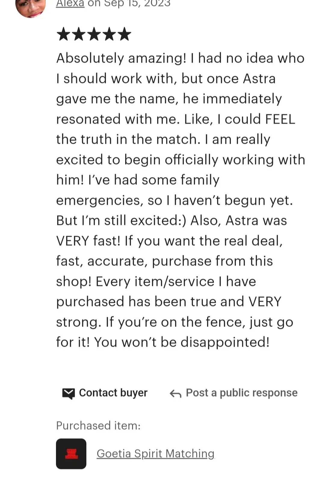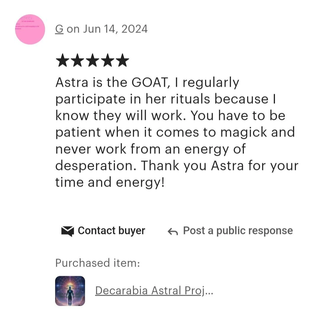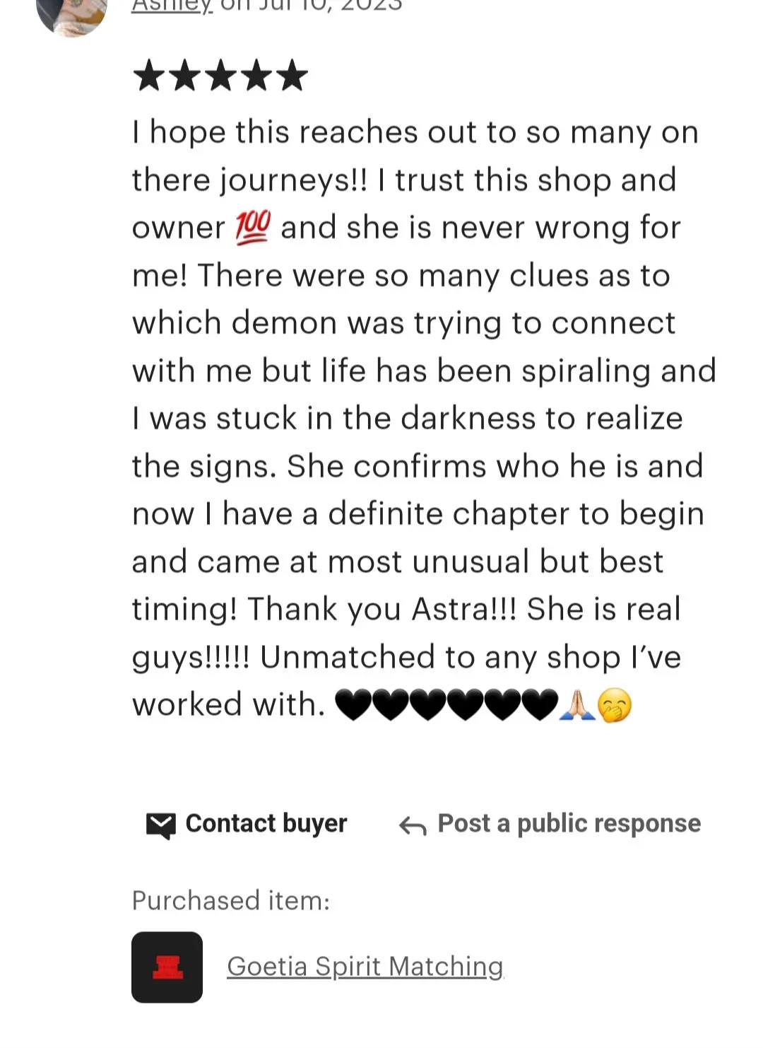 Santa Muerte Ancestor Connection Spell $250.00 Nyx Underworld Connection Spell $250.00 NEW! Astaroth Spirit Communication Spell, tailored to Mediums, Ghost Hunters, and Spirit Keepers! $250.00 Retrieval/Rebinding of ONE spirit, Direct Binding ONLY to you or an item you have $50.00 Direct Deity Portal Binding- ANY DEITY OR DEMON OF YOUR CHOICE! $65.00 Goetia Demon Matching Service- ACCURATE Reading to find your best Goetia Demon match! $50.00 Ascended Lunar Fae Direct Binding LIMITED/ARTISANAL BINDING! Tier 3 Binding $600.00 Spirit Companion Sigil Service, Custom Spirit Sigil $35.00 Cupid/Eros Love Ritual, for a target or to attract a new lover $350.00 Buer Healing Spell, Demonic Healing Magick $250.00 Home Energy Clearing/ Entity Removal $400.00 7 Archangels Attunement, Angelic Awakening, Align yourself to the power of the 7 Archangels $250.00 Raphael Purification and Rejuvenation Ritual $250.00 Spirit Companion ETERNAL BINDING $350.00 Azazel Empowerment Ritual- Awaken YOUR Black Flame! $400.00 Decarabia Astral Projection Ritual- For even the most resistant person $250.00 POWERFUL Break Up Ritual with the help of Asmoday, Shemyaza and Lucifer $350.00 Apollo Musical Talent Ritual, Play ANY instrument to the highest capacity $250.00 Belial Pathfinding Ritual $250.00 Andras Revenge Curse- POTENT ruin curse $500.00 Bune Pact, ONE YEAR pact to CHANGE YOUR LIFE! $450.00 Asmoday Lust Ritual, MALE sexual dominance spell $250.00 Mammon Career Change Spell $250.00 Lucifer Pact $666.00 Fairie Luck Spell $250.00 Clauneck Money Ritual, POWERFUL financial road opener ritual $250.00 Haagenti Blockage Removal Ritual $250.00 Third Eye Activation $250.00 Aphrodite Beauty Spell $250.00 Energy Body Attunement, Clear Blockages, Open Chakras,Arcturian Energy Attunement, Arcturian Light Codes $250.00 Demonic Love Spell, 3 Demon Spell $350.00 Lilith Spell of Youthful Essence $250.00