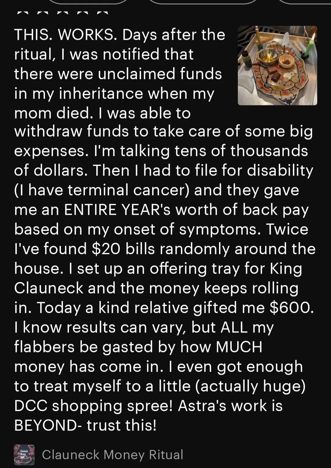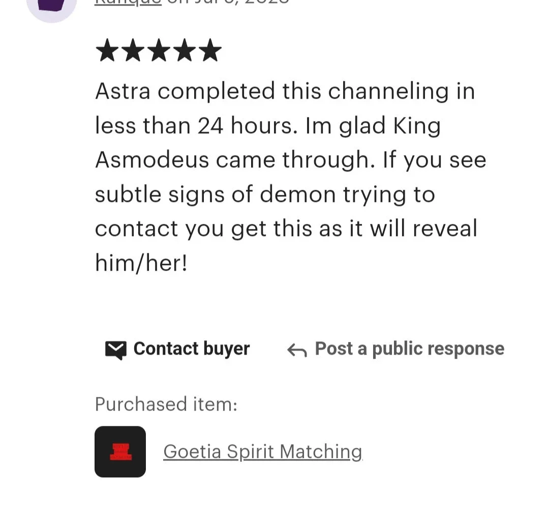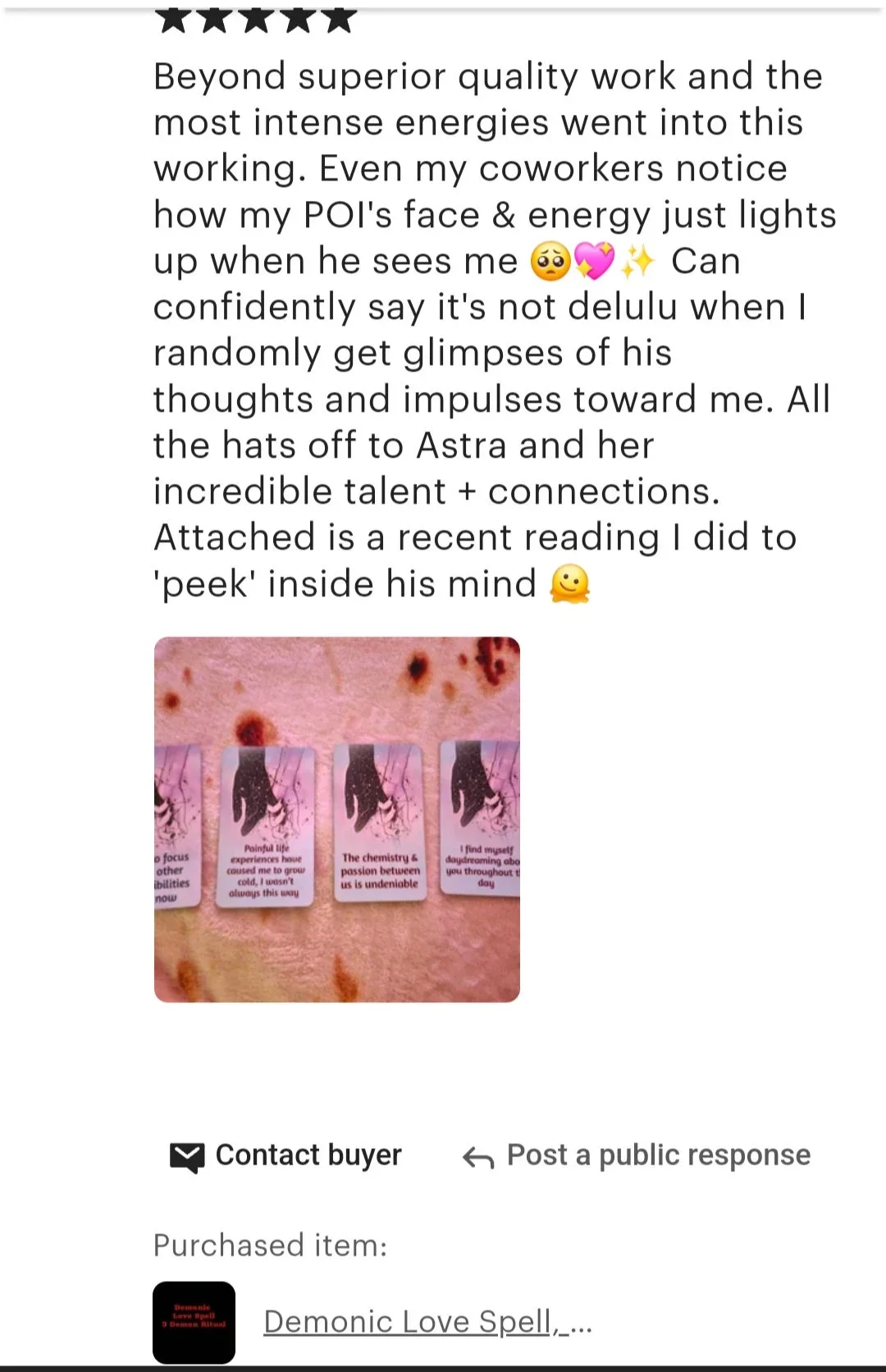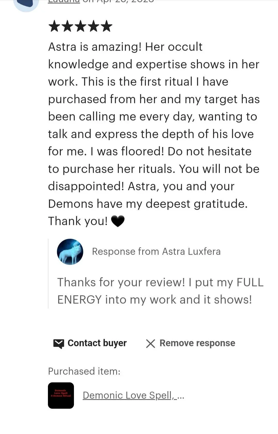 Santa Muerte Ancestor Connection Spell $250.00 Nyx Underworld Connection Spell $250.00 NEW! Astaroth Spirit Communication Spell, tailored to Mediums, Ghost Hunters, and Spirit Keepers! $250.00 Retrieval/Rebinding of ONE spirit, Direct Binding ONLY to you or an item you have $50.00 Direct Deity Portal Binding- ANY DEITY OR DEMON OF YOUR CHOICE! $65.00 Goetia Demon Matching Service- ACCURATE Reading to find your best Goetia Demon match! $50.00 Ascended Lunar Fae Direct Binding LIMITED/ARTISANAL BINDING! Tier 3 Binding $600.00 Spirit Companion Sigil Service, Custom Spirit Sigil $35.00 Cupid/Eros Love Ritual, for a target or to attract a new lover $350.00 Buer Healing Spell, Demonic Healing Magick $250.00 Home Energy Clearing/ Entity Removal $400.00 7 Archangels Attunement, Angelic Awakening, Align yourself to the power of the 7 Archangels $250.00 Raphael Purification and Rejuvenation Ritual $250.00 Spirit Companion ETERNAL BINDING $350.00 Azazel Empowerment Ritual- Awaken YOUR Black Flame! $400.00 Decarabia Astral Projection Ritual- For even the most resistant person $250.00 POWERFUL Break Up Ritual with the help of Asmoday, Shemyaza and Lucifer $350.00 Apollo Musical Talent Ritual, Play ANY instrument to the highest capacity $250.00 Belial Pathfinding Ritual $250.00 Andras Revenge Curse- POTENT ruin curse $500.00 Bune Pact, ONE YEAR pact to CHANGE YOUR LIFE! $450.00 Asmoday Lust Ritual, MALE sexual dominance spell $250.00 Mammon Career Change Spell $250.00 Lucifer Pact $666.00 Fairie Luck Spell $250.00 Clauneck Money Ritual, POWERFUL financial road opener ritual $250.00 Haagenti Blockage Removal Ritual $250.00 Third Eye Activation $250.00 Aphrodite Beauty Spell $250.00 Energy Body Attunement, Clear Blockages, Open Chakras,Arcturian Energy Attunement, Arcturian Light Codes $250.00 Demonic Love Spell, 3 Demon Spell $350.00 Lilith Spell of Youthful Essence $250.00